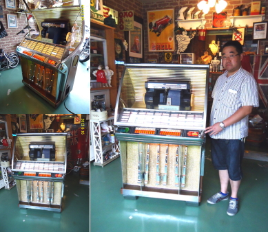 集めた500枚のレコードは昭和の名曲(ジャケット付き)ばかりです。肥澤社長は、このWurlitzer2400が大変お気に入りで、このジュークボックスを見た方はどなたもみんなびっくりされるそうです。仕事の合間にジュークボックスの音色を楽しんでいらっしゃいます。![]() |